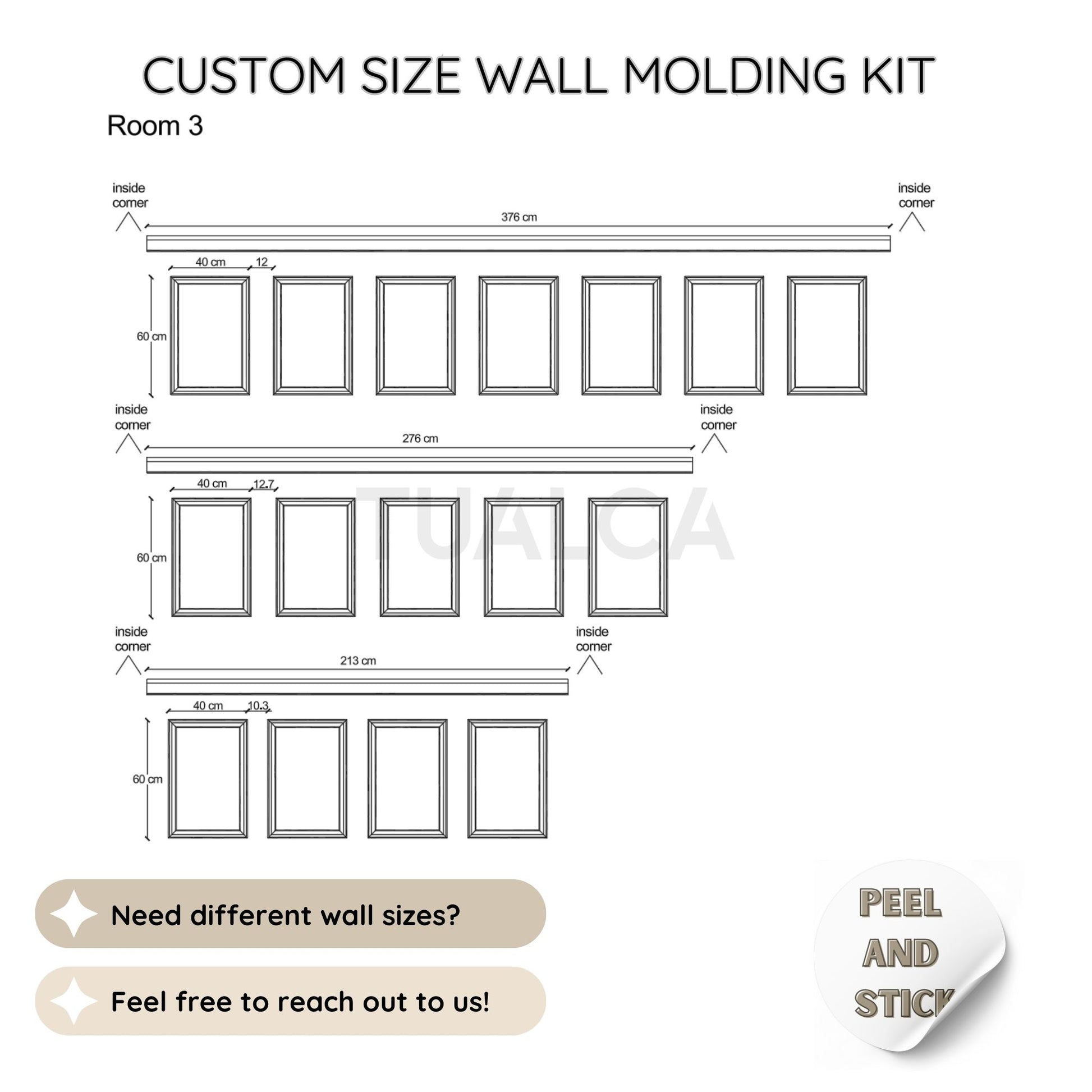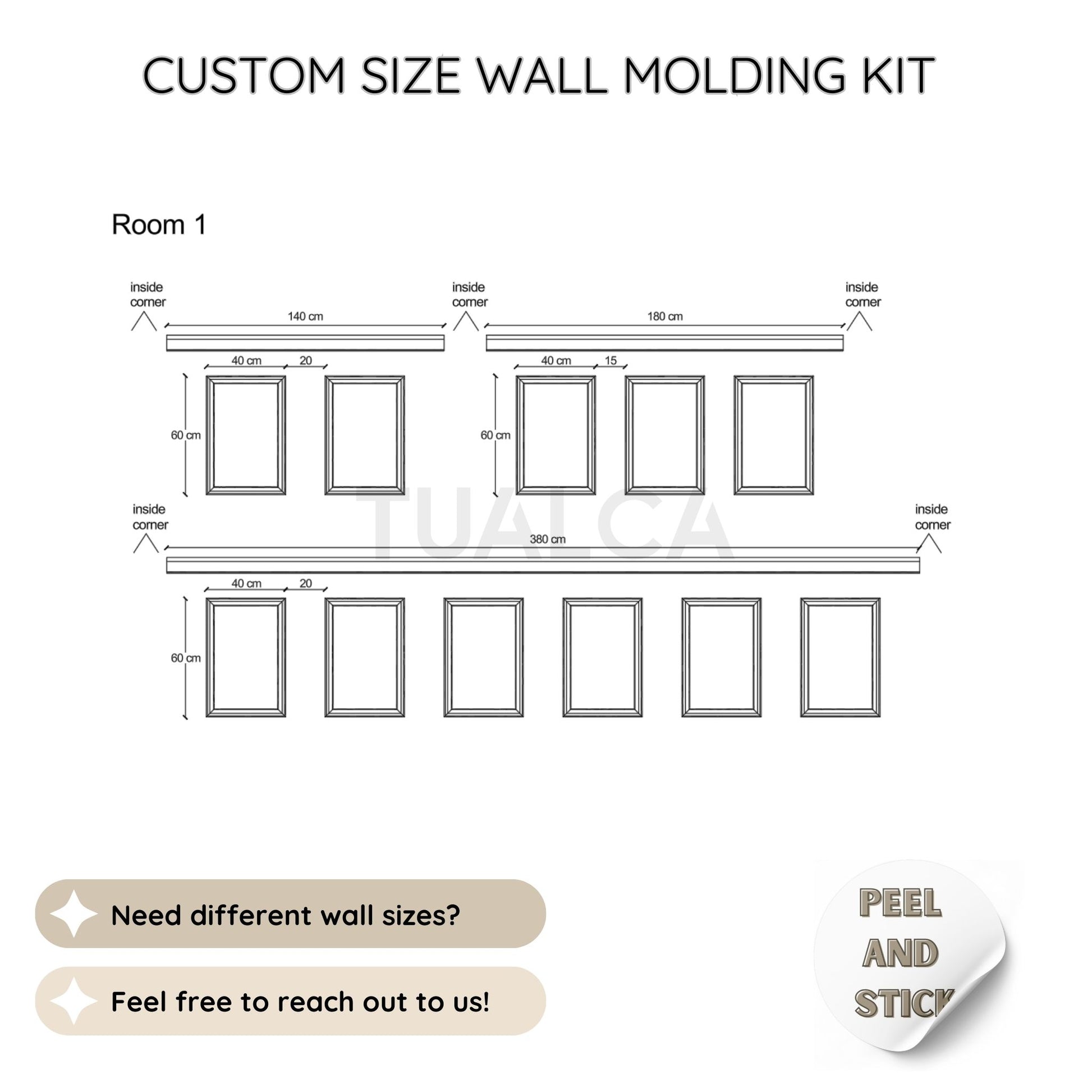 Custom Design - Transform your walls effortlessly with Tualca's Pre-Cut Wall Moulding Frame Set. Designed for easy, DIY installation, this set comes with pre-cut pieces that make it simple to add a touch of elegance to any room.